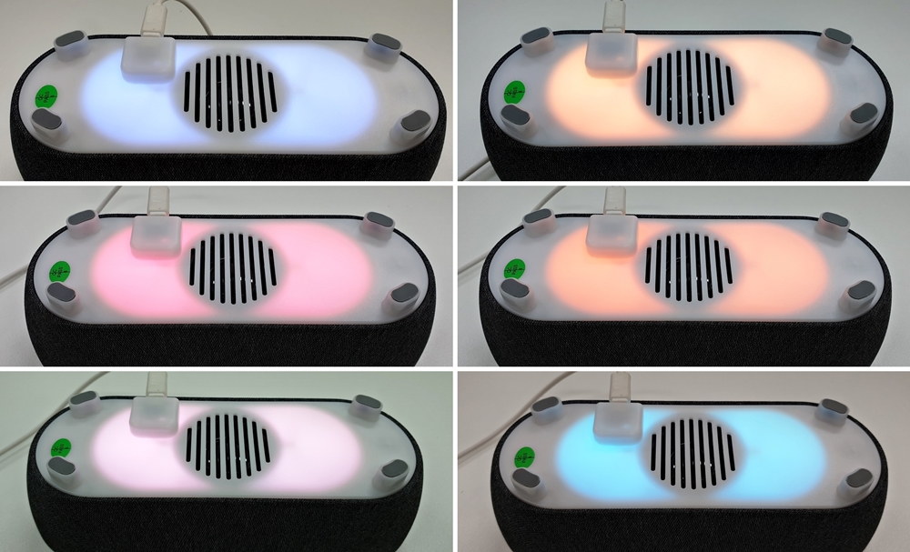 조명 버튼을통해 연하늘, 옐로우, 핑크, 오렌지, 자몽, 연분홍색, 스카이 총 7가지 컬러로 변경할 수 있습니다.